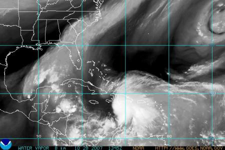 Je vous présente donc ci-dessous la tempête tropicale NOEL qui s'éloigne de la Guadeloupe vers le nord - ouest . Elle touche actuellement Haïti et Saint-Domingue et devrait affecter Cuba, la Jamaïque et les Bahamas dans les prochaines heures.