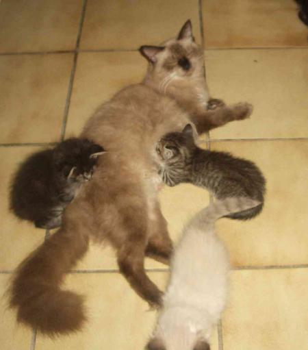 Pour vous faire patienter voici quelques photos en vrac de Lotus et ses chatons prisent au cours de la semaine écoulée, et quelques photos des cousins et cousines :