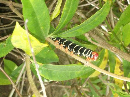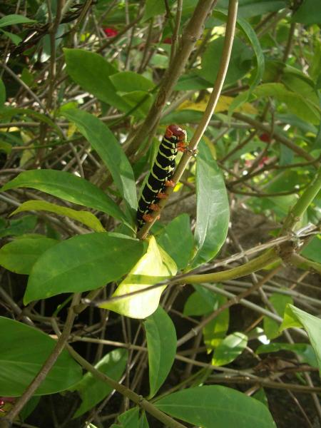 Cette chenille évolue principalement dans les fleurs d'ALAMANDA dont elle se nourrit des feuilles.