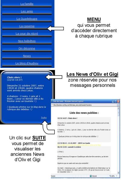 Comme vous pouvez le constater sur la page d'accueil des liens nouveaux sont apparus ( sous forme de boutons ) pour vous permettre d'accéder directement à certains articles ou autres données.